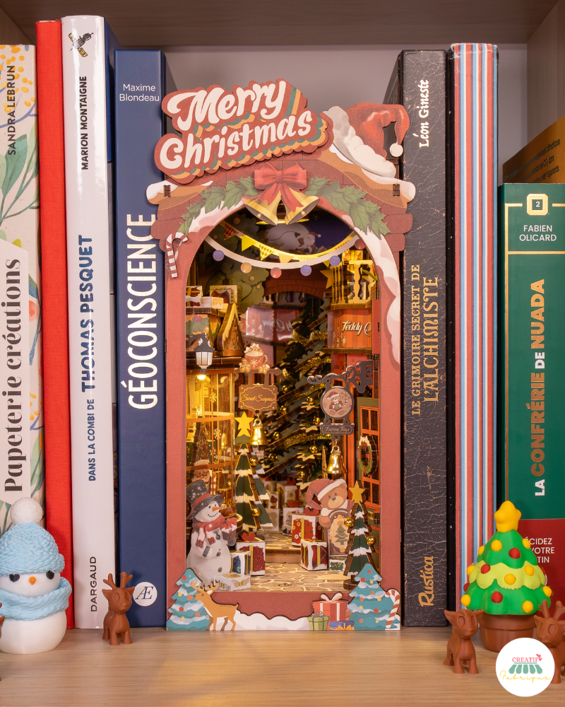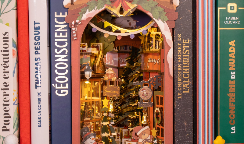 Pour réaliser ce book-nook de Noël, j’ai utilisé un kit de la marque Rolife. Le modèle du kit est « Christmas Street ».